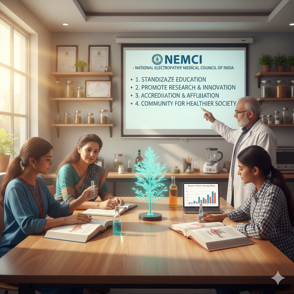 The National Electropathy Medical Council of India (NEMCI) is a premier and autonomous organization committed to the growth, regulation, and standardization of Electropathy and Natural Healing Sciences across India.