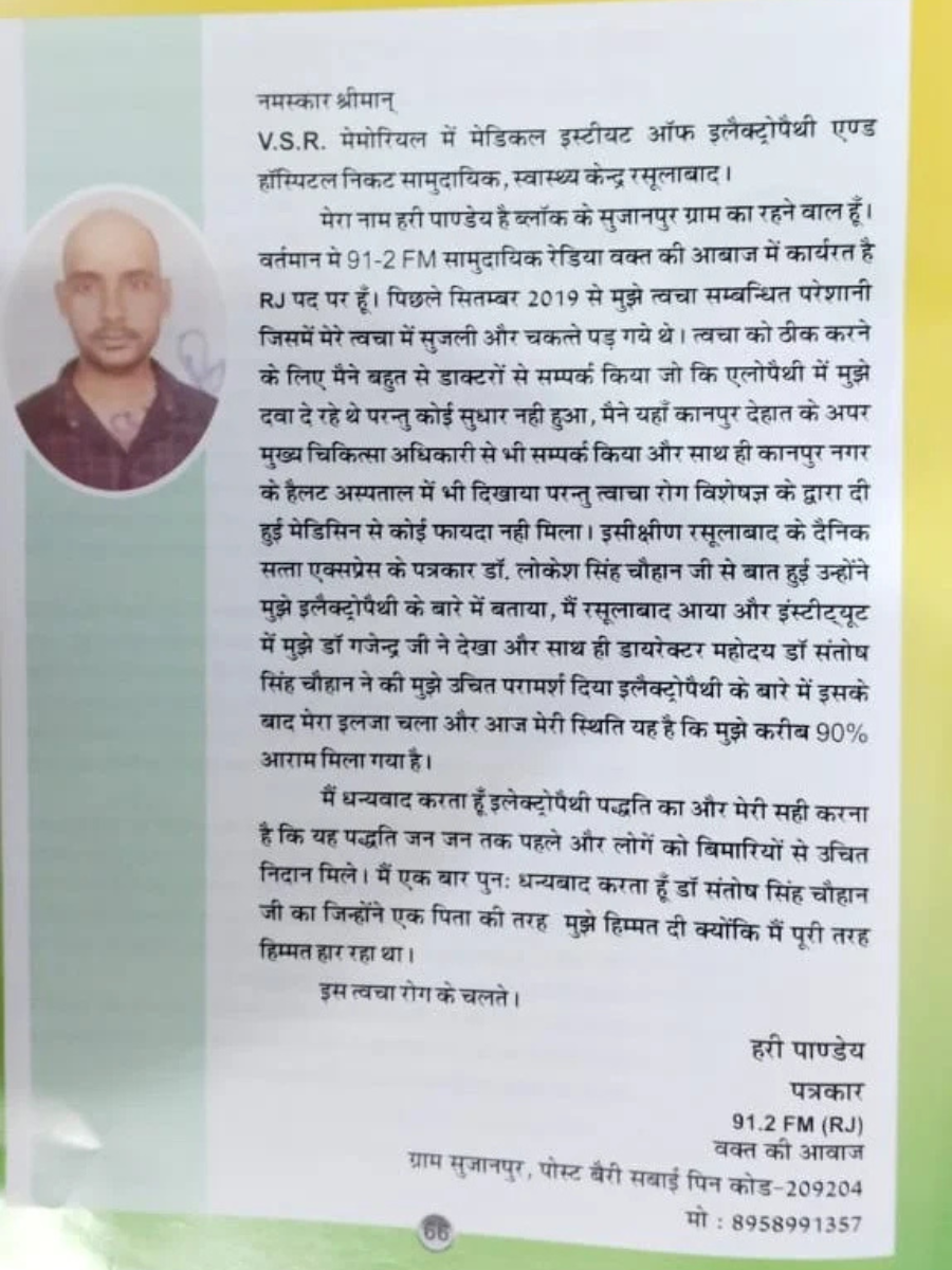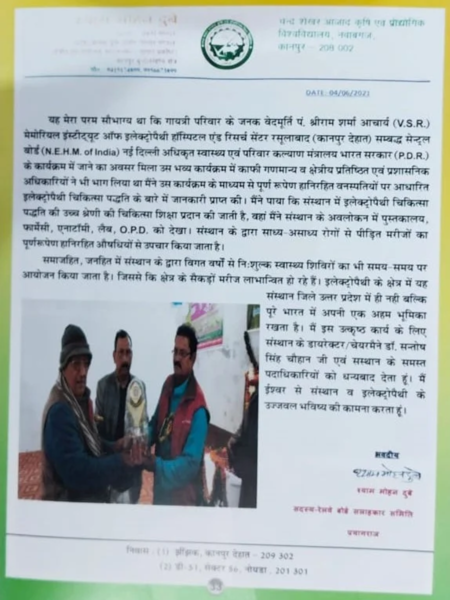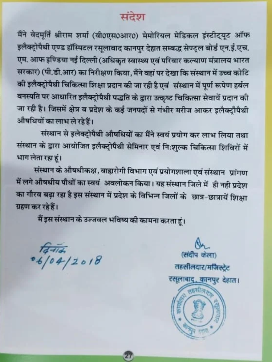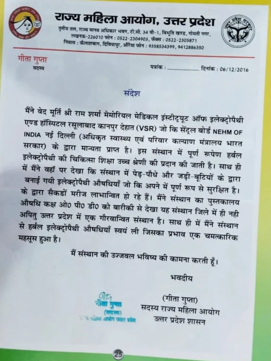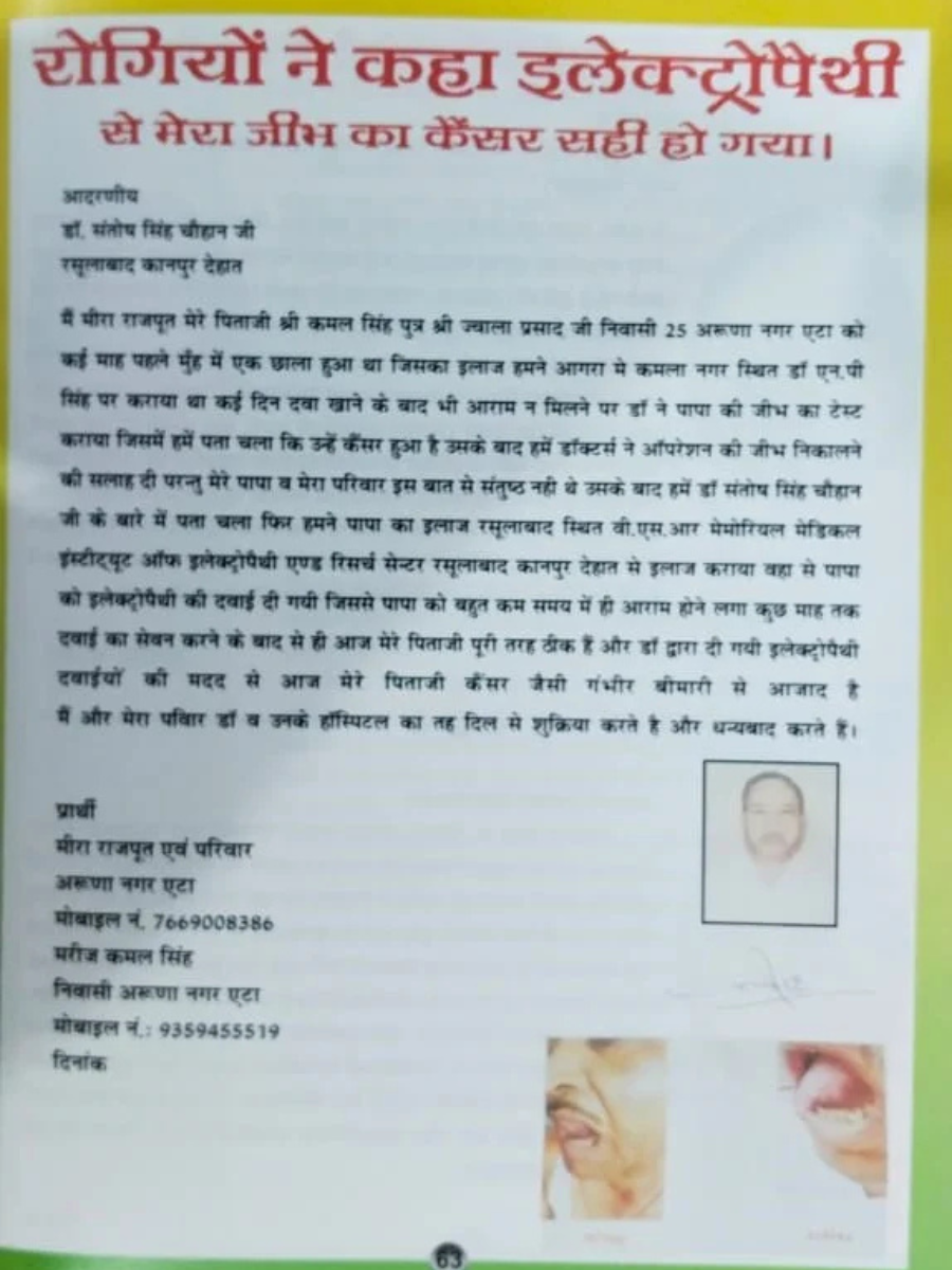 Remarks:  Under National Electropathy Medical Council of India – NEMCI